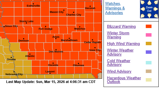 Area Counties: Crawford-Carroll-Audubon-Guthrie-Dallas-Cass-Adair-Madison-Adams-Union-Taylor-Ringgold…A BLIZZARD WARNING REMAINS IN EFFECT FROM 1 PM THIS AFTERNOON TO 7 AM CDT MONDAY…
