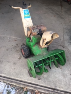 FOR SALE: Snow blower – John Deere model 832, 2 stage blower, 32″ cut, electric start, self propelled, has lock outs for easy turning $500 obo. 249-0233