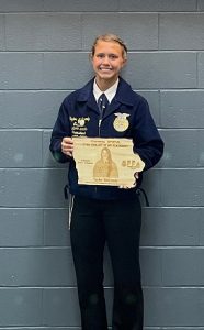 Alyssa said “FFA has shown me what the true meaning of being a leader is. I’ve been able to step more out of my comfort zone and I’ve spoken with many individuals from all over the United States. Becoming the Vice President of the chapter has allowed me to learn my role as an individual and has helped me develop more relationships with members. My favorite experience was having the opportunity to travel to Indianapolis for National FFA Convention.“