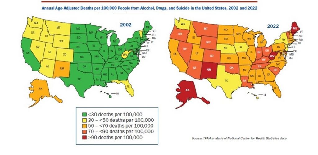 In the report, “Pain in the Nation 2024: the Epidemic of Alcohol, Drug, and Suicide Deaths,” researchers found a slight drop in the combined rate of alcohol, drug, and suicide deaths, but that rate is still more than double what it was 20 years ago. Gracia points to a lack of access to treatment options.