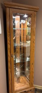 FOR SALE: Corner curio cabinet with light for sale. We are asking $125.00. Call 712-249-2558 if interested. SOLD!
