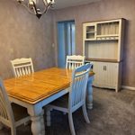 FOR SALE: Kitchen/dining room table (used), 5‘ x 3 1/2‘, 4 padded chairs, One 18 inch leaf, Good condition. $175. If interested please contact 712-249-2558.