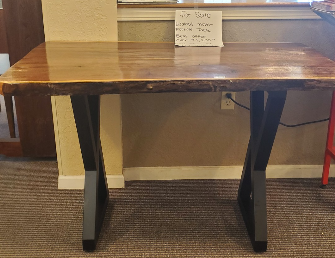 FOR SALE: This is a walnut hand made walnut multi-purpose table. Maybe a small kitchen table, coffee table, hallway table, etc.etc. you can see it at Allen Place, 1406 E 19th St, Apt 104 Atlantic. Enclosed are a few pictures of the table. Asking $1,000. Also Call Tim at 712-249-9242.