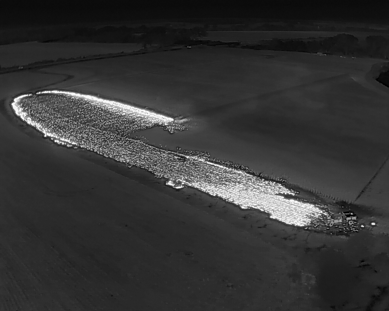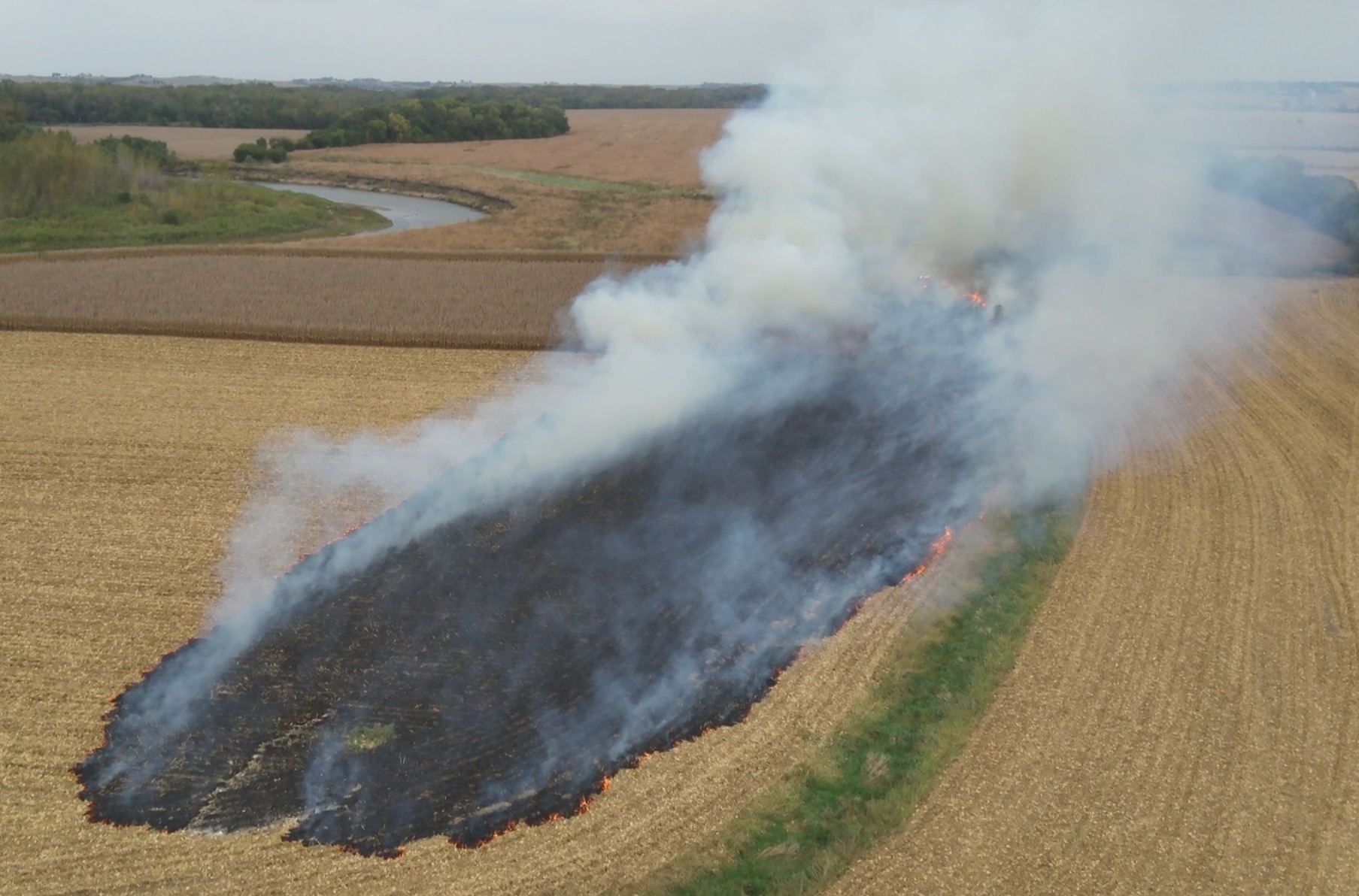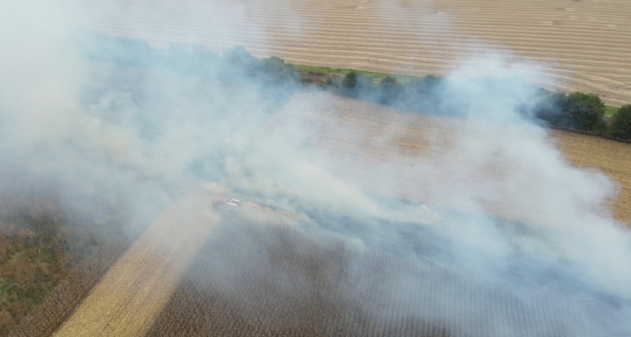 The first units to arrive on the scene found a moderately fast spreading field fire in a partially harvested cornfield, traveling north towards standing corn and an adjoining CRP field. The Montgomery County Emergency Management Agency deployed its drone (See aerial photos; black and white are infrared images) to provide direction from above to fire suppression units on scene and assisted with incident command while crews were actively fighting the field fire.