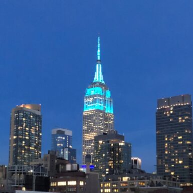 Pictured: An example of a building lit-up in teal to raise awareness of Alzheimer’s Disease: The Empire State Bldg. in New York (AFA photo)