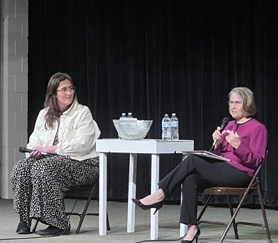 Pictured: Congresswoman Miller-Meeks answered audience question reads by KILJ General Manager Kadie Johannson, who moderated the forum. (KILJ photo)