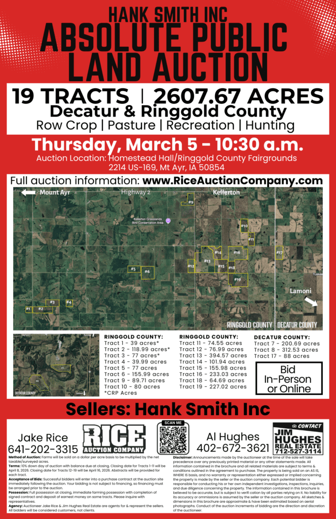 Here you will find information about area real estate, machinery, livestock and household auctions along with links to specific web sites or files where you can view the actual auction listings, ENJOY!