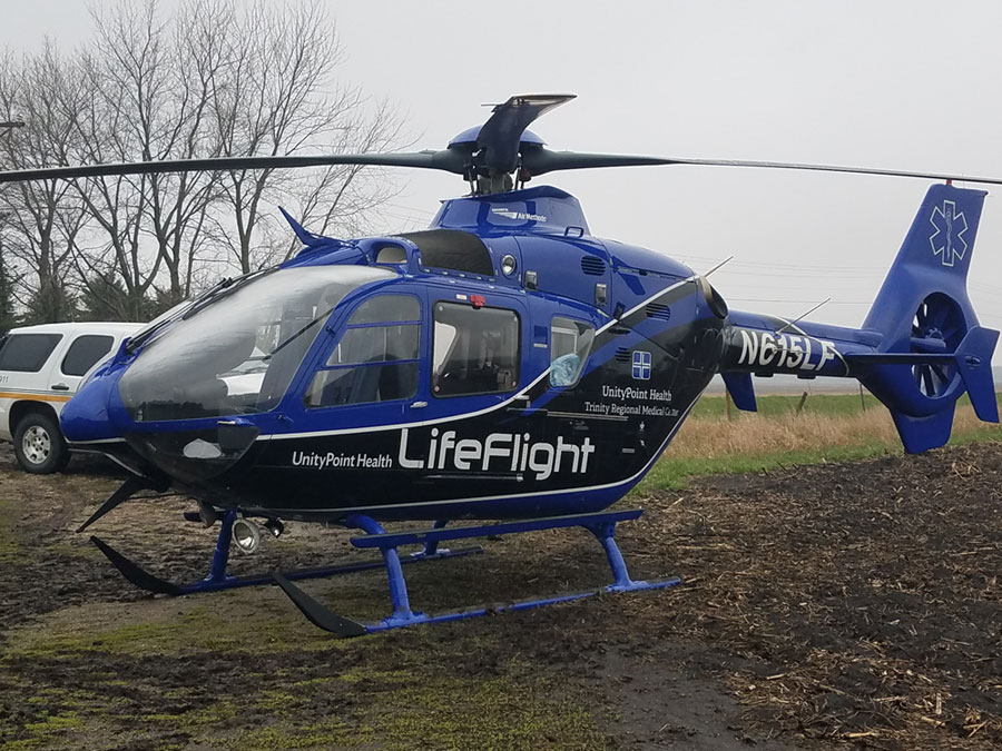 A Life Flight medical helicopter made an emergency landing north of Stratford shortly after 2 a-m today (Thursday) after notifying the Hamilton County Sheriff’s Office of a problem. The crew members stated that they had struck a bird while in flight. A windshield was broken out as a result with all crew members escaping injury. The helicopter landed in a farm field. The helicopter is owned by Unity Point Health Trinity Regional Medical Center out of Fort Dodge. The crew was returning to Fort Dodge after transferring a patient to Iowa City.