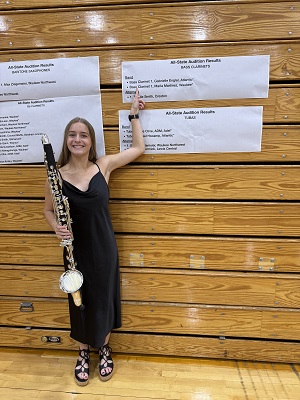 Mr. O’Donnell congratulated Grace Mitchell for Making All-State on French Horn all four years of her high school career. Of the 17 percent of students that are selected for this ensemble, O’Donnell said less than 1 percent of those chosen make it all four years. (All photos courtesy of Mr. O’Donnell)