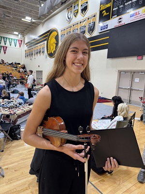 Mr. O’Donnell congratulated Grace Mitchell for Making All-State on French Horn all four years of her high school career. Of the 17 percent of students that are selected for this ensemble, O’Donnell said less than 1 percent of those chosen make it all four years. (All photos courtesy of Mr. O’Donnell)