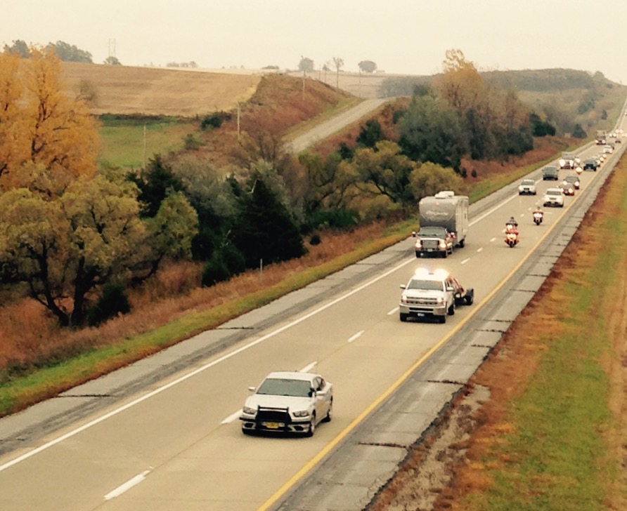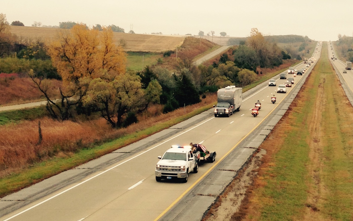 Law enforcement personnel and firefighters from Cass County lined the bridges and overpasses to Interstate 80 this (Friday) afternoon, as a contingent of Patriot Guard riders, veterans and Emergency Services personnel escorted a piece of history through Iowa on its way to Colorado.