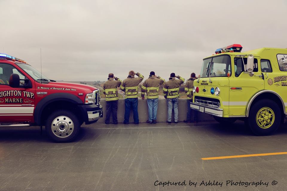 Firefighters from Minden stand ready to honor the WTC beam convoy as they prepare to pass by. (Minden Fire & Rescue Facebook page photo)