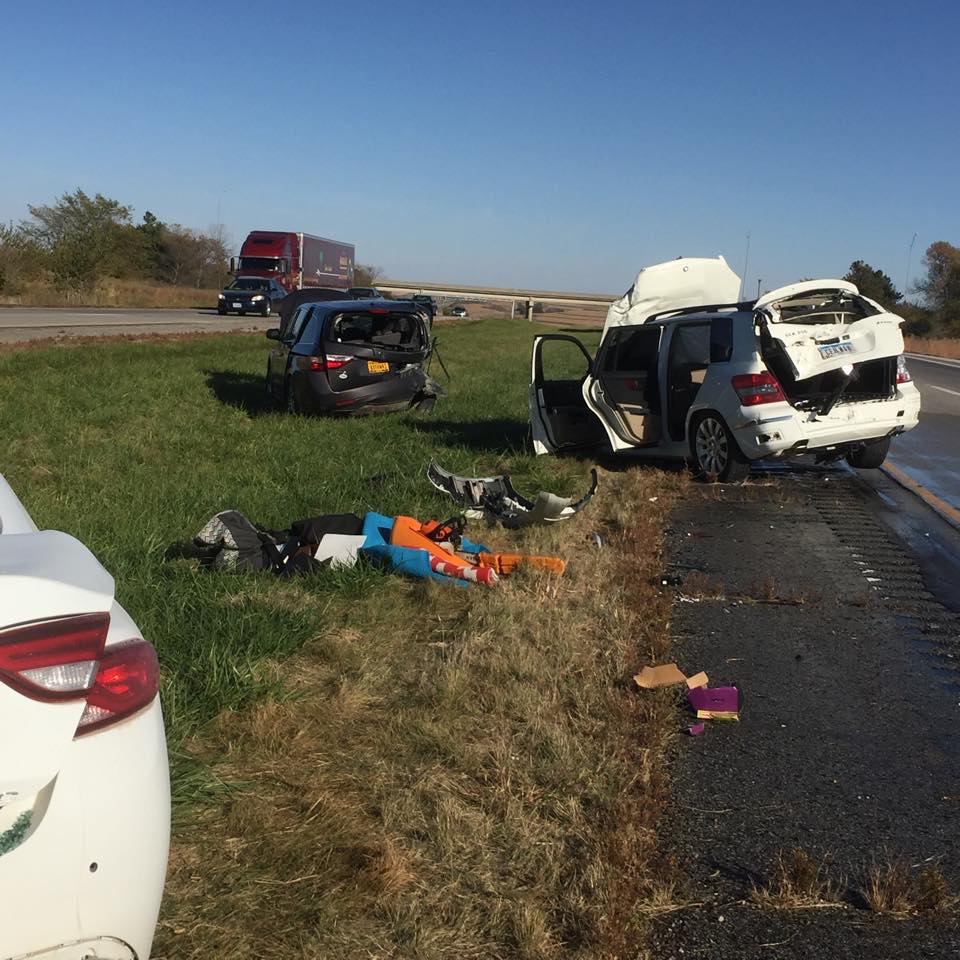 According to the Iowa State Patrol, the accident happened at around 3:30-p.m., as two vehicles were stopped in the right lane, due to heavy traffic caused by road work at mile marker 31, where the one lane was shut down for repairs. Two other vehicles were stopped in the left lane. A 2012 Mercedes GK3 driven by 44-year old Bruce Eric Kinman, of Des Moines, was approaching at a high rate of speed. Kinman swerved left to miss the vehicles in the right lane, but hit a Chrysler 200, sending it into the median. The Mercedes then sideswiped a Hyundai SUV, causing it to lift off the ground and sideswipe a tractor-trailer before it slammed into a Honda mini-van, which then rear-ended a pickup truck.
