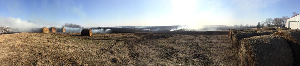 Peronnel with the Villisca Fire Dept along with several other firefighters from Department within Taylor, Page and Adams County, battled a large field fire Tuesday afternoon. Montgomery County Emergency Management Director Brian Hamman said on his social media page that the fire involved several hundred acres, large round hay bales and brush piles.