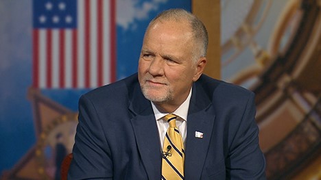 GOP gubernatorial candidate Brad Sherman on the “Iowa Press” set at Iowa PBS on Oct. 17, 2025. (Iowa PBS photo)