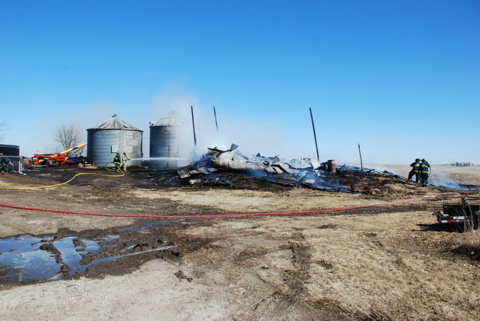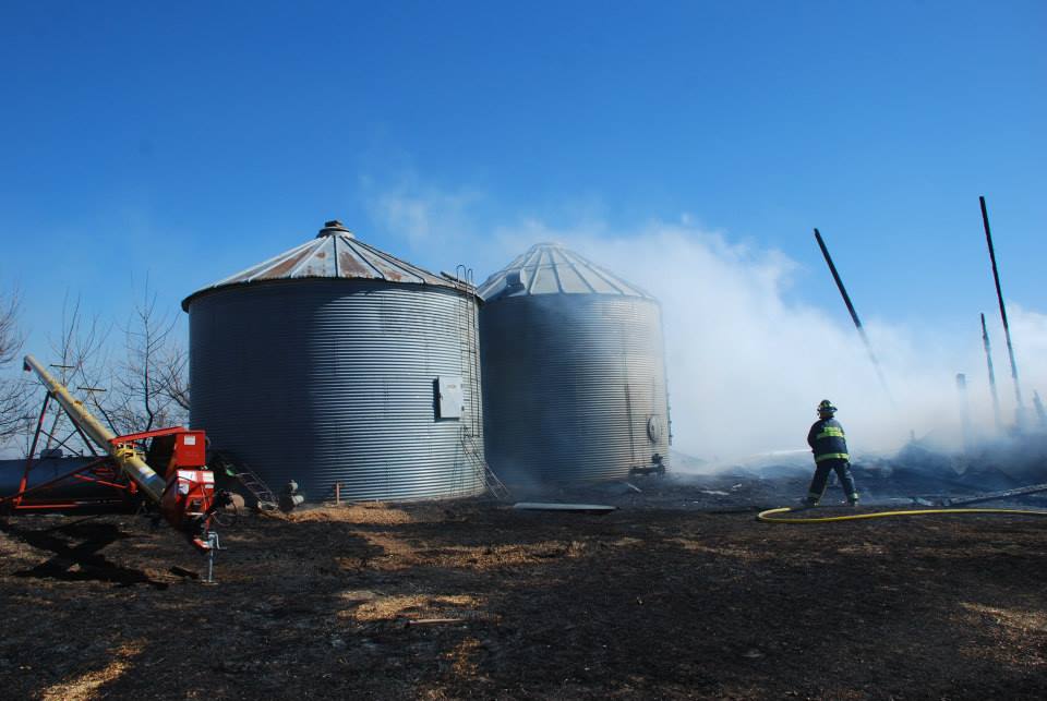 The blaze started in the barn that was being torn down, and extended to the field as well as two grain bins. Several area farmers assisted with removal of grain from the bins as well as providing tractors in the field to contain the field fire. No injuries were reported.