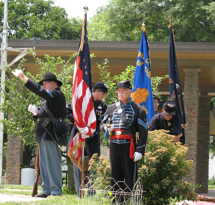 Cass County Supervisor Mark Wedemeyer made official, the re-dedication, which concluded with the placing of colors, the Pledge of Allegiance, the setting of a Civil War soldiers’ field pack, wreath and flag at the base of the monument, a performance of TAPS, and a 21-gun salute.