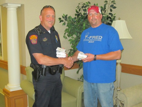 Officials with the Trevor Frederickson Memorial Fund recently presented Acting Atlantic Police Chief Dave Erickson with ice cream reward certificates to be distributed to kids who are caught wearing their bicycle helmets during the month of June, as part of an effort to promote safe biking.