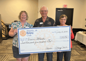 (Atlantic, Iowa) – The Atlantic Rotary Club has donated $2,500 to Vision Atlantic’s transformative project, which will bring a housing development, new child development center, and YMCA expansion to Atlantic.
