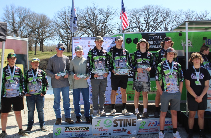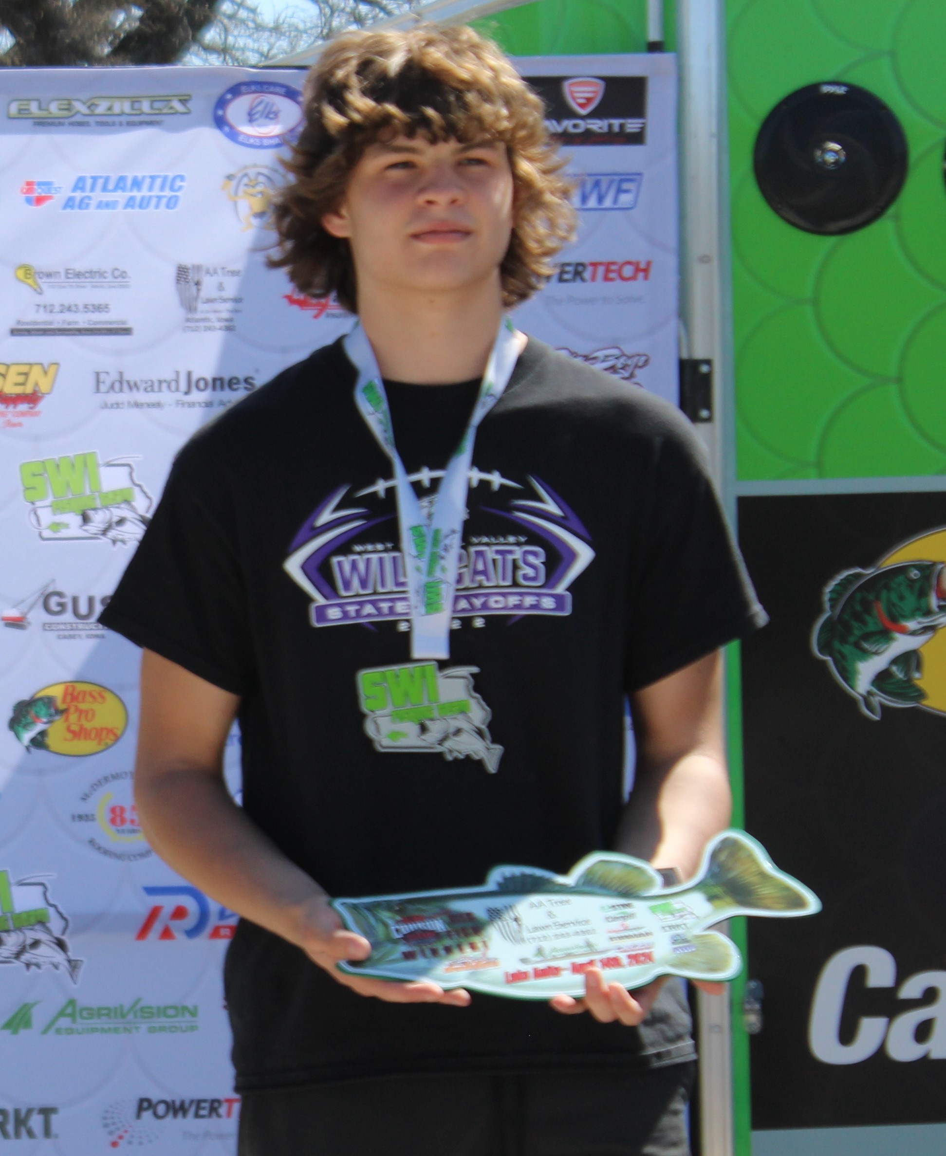The Southwest Iowa Fishing Team started up their spring tournament season in the AgriVision Elite boat series. Seventeen student angler teams launched their boats early on Sunday morning and navigated the lake looking to hook the five biggest fish. Atlantic Trojan anglers Joaquin and Jake Wailes of Wiota reeled in the winning bag in Powerade High School Series at the AA Tree Service TBF bass fishing tournament on Lake Anita. The brothers found the fish early and late to bring their limit of 5 fish weighing 10.32 pounds. The rest of the Top places were highly competitive Cam Cougars Owen and Brentyn Hoover finished in the runner up spot with a total of 8.68, third place went to Atlantic Trojan’s Colton and Colin Rudy with 8.32, West Central Valley Jordon Robison / Nathan Bentler were fourth with 8.20 and rounding out the top five Atlantic Trojans Gavin Dougherty and Harlan Cyclones Cody Swank 5.55.