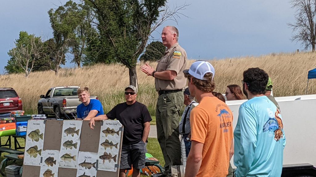 Kids in attendance heard a presentation on fish identification from Iowa DNR Fisheries Technician Mark Boucher. He used some posters to talk about the differences in fish species in Iowa and then brought out some live fish to have the kids put their identifying skills to the test.