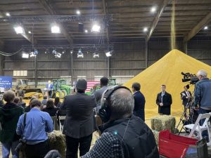Biden made the announcement in a storage barn for dried distillers grain — by by-product of ethanol production and hosts left a 300 ton pile of it inside for the event.. Michael Walz is a V-P for POET, the company that owns the facility Biden visited.