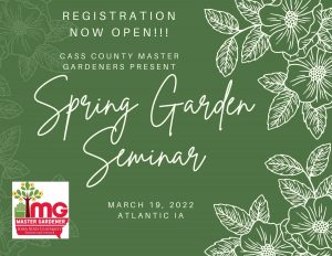 (Atlantic, Iowa) – Get ready to welcome spring, by attending the Cass County Master Gardeners’ 2022 Spring Garden Seminar, in Atlantic. The event is set to take place Saturday, March 19th. The 2022 Spring Garden Seminar features a theme of “Gardening from the Ground Up” and is a half day seminar designed to provide information and inspiration to gardeners of all skill levels. After a break in 2021, organizers say they are excited to be bringing the seminar back to the Cass County Community center this year.