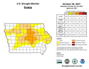 (Ames, Iowa) – The latest Iowa Drought Monitor map was released this (Thursday) morning. It shows continued improvement in the drought conditions, statewide. Locally, much of Montgomery, Cass and Adair Counties remain “Abnormally Dry,” while nearly two-thirds of Madison County is Abnormally Dry. Across Interstate 80, most of Audubon County is experiencing the same conditions, while small parts of Guthrie and Dallas Counties range from Abnormally Dry to mostly Moderately Dry.
