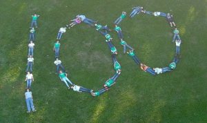 A member who did their presentation on drones and the use of them in farming applications was able to take a great photo of the club celebrating 100!