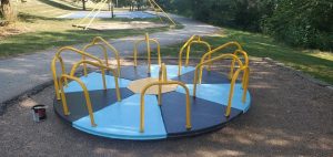 One of the many pieces of playground equipment has received a fresh coat of paint.