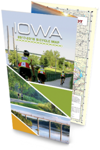 The Iowa Department of Transportation is now distributing the 2017-2018 Iowa Bicycle Map. The popular publication has been updated to show new 4-foot or wider paved shoulders and recreational trails completed since the 2015-2016 version was published. As in past versions, the map highlights bike-friendly routes when traveling on two wheels through Iowa by identifying bike trails and traffic levels on all paved roads. The map also includes insets of Iowa’s 16 largest cities.