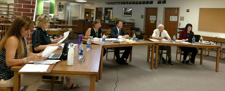 Atlantic School Board (From left to right: Kristy Pellett, Jenny Williams, Ali Bruckner, Superintendent Steve Barber, Dr. Keith Swanson and Finance Director/Board Sec. Sarah Sheeder (Josh McLaren on the phone for this meeting)