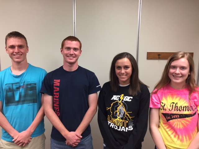 Jim Field visits with Adair-Casey/Guthrie Center High School seniors Rachel Rumelhart, Logan Jensen, Cale Billheimer and Landon Foster.