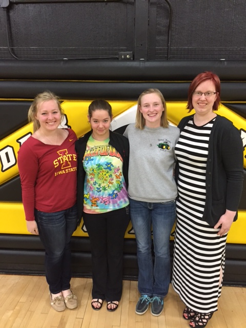 Jim Field visits with Kennedy Plowman, Miranda Plowman, Delainee Goetz and Isabelle Sheeder, top graduates of the Adair-Casey class of 2016.
