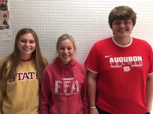 Jim Field visits with Keaton Wessel, Grace Christensen and Aden Torneton from the 2019 senior class at Audubon High School.