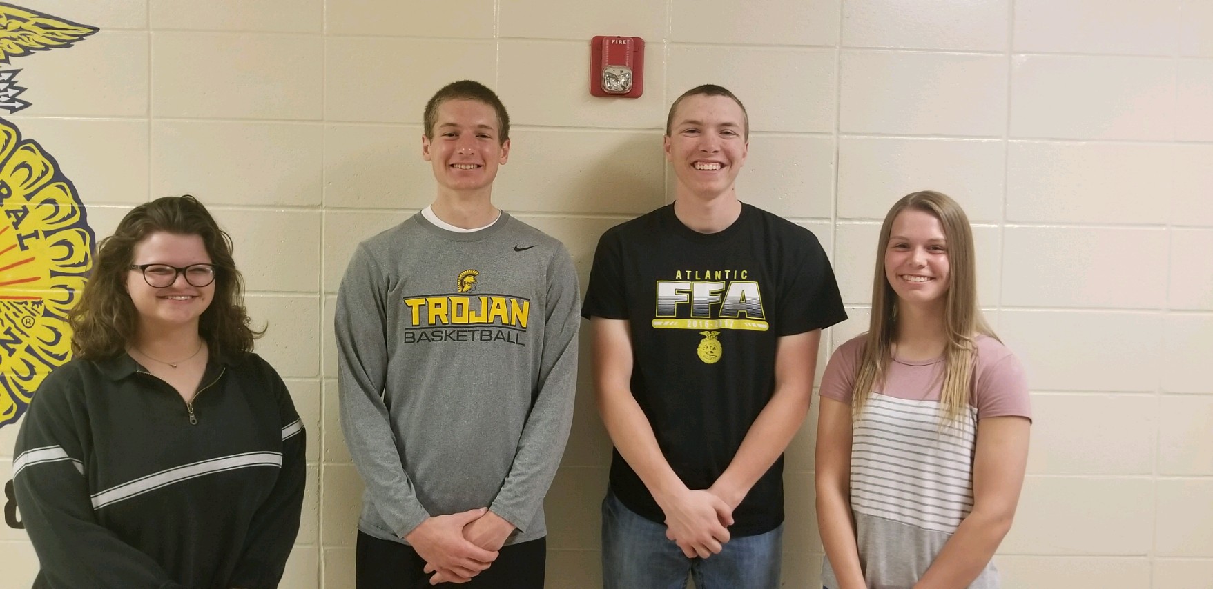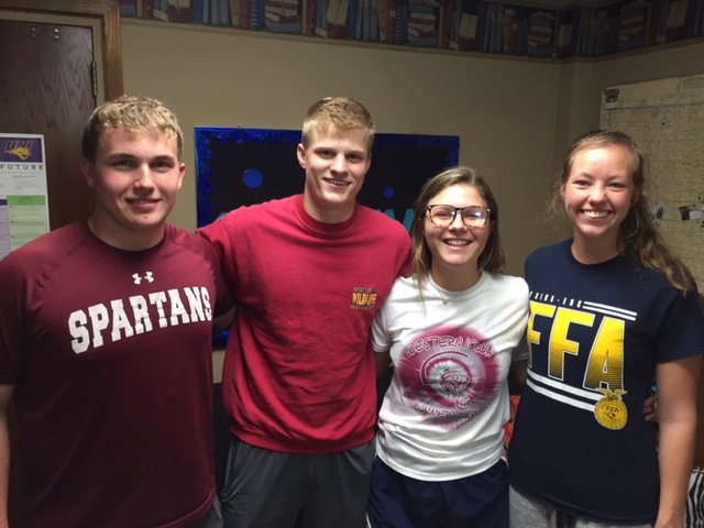 Jim Field visits with Sarah Schorle, Alyssa Ginther, Tyler Comes and Nathan Behrends, some of the top members of the class of 2019 at Atlantic High School.