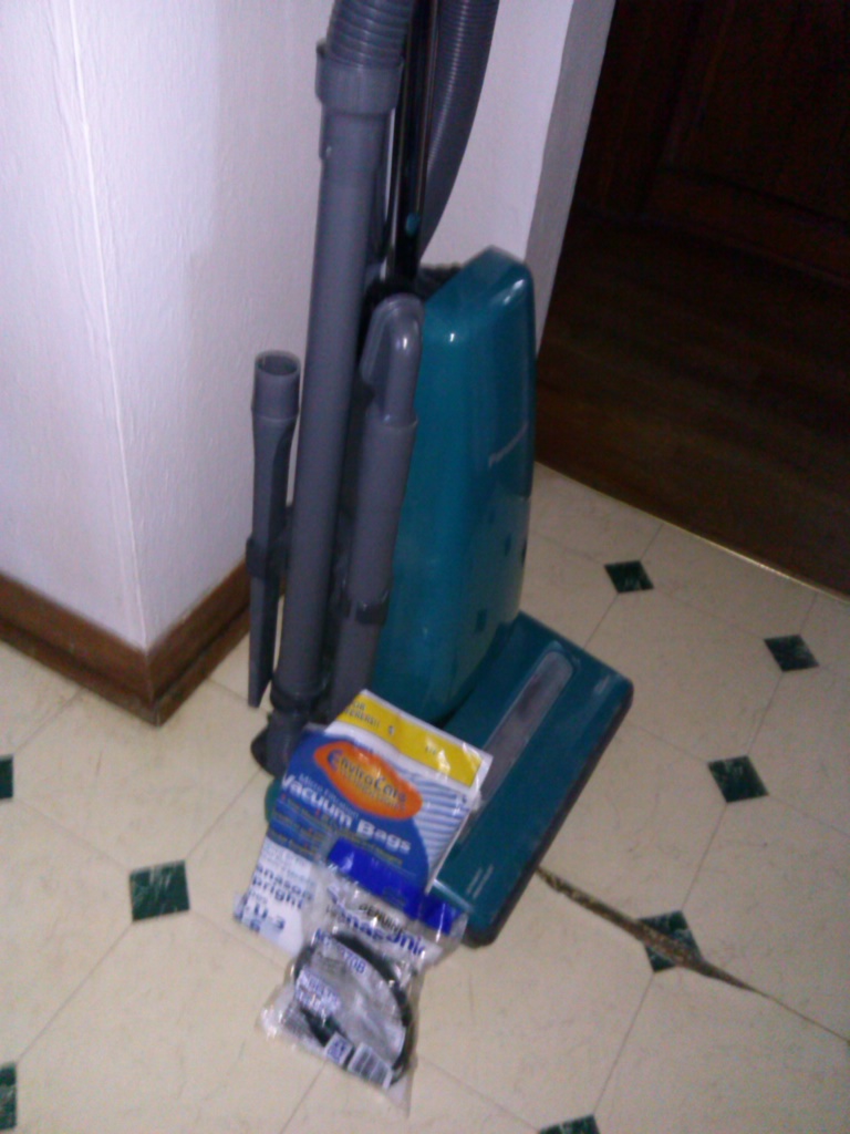 FOR SALE: Panasonic Vacuum model no.MC-UG383. 8 bags and 2 new belts also. Lightweight Upright Vacuum Cleaner, Powerful 12-Amp Motor with a Motor Protection System, Automatic Carpet Height Adjustment, Tools on board include: Dusting Brush, Crevice Tool, 2 Extension Wands, 14 Inch Cleaning Path, 25 Foot Power Cord with Quick Release, Headlight, 10 Foot Hose Reach, Edge Cleaning on 1 Side, Metal Handle, On/Off Switch on body, Replacement Accessories: Bag (M-CV145MS or Type U6), Belt (M-CV270B or Type UB8), Blue finish. $50. In Anita, 249-6690.