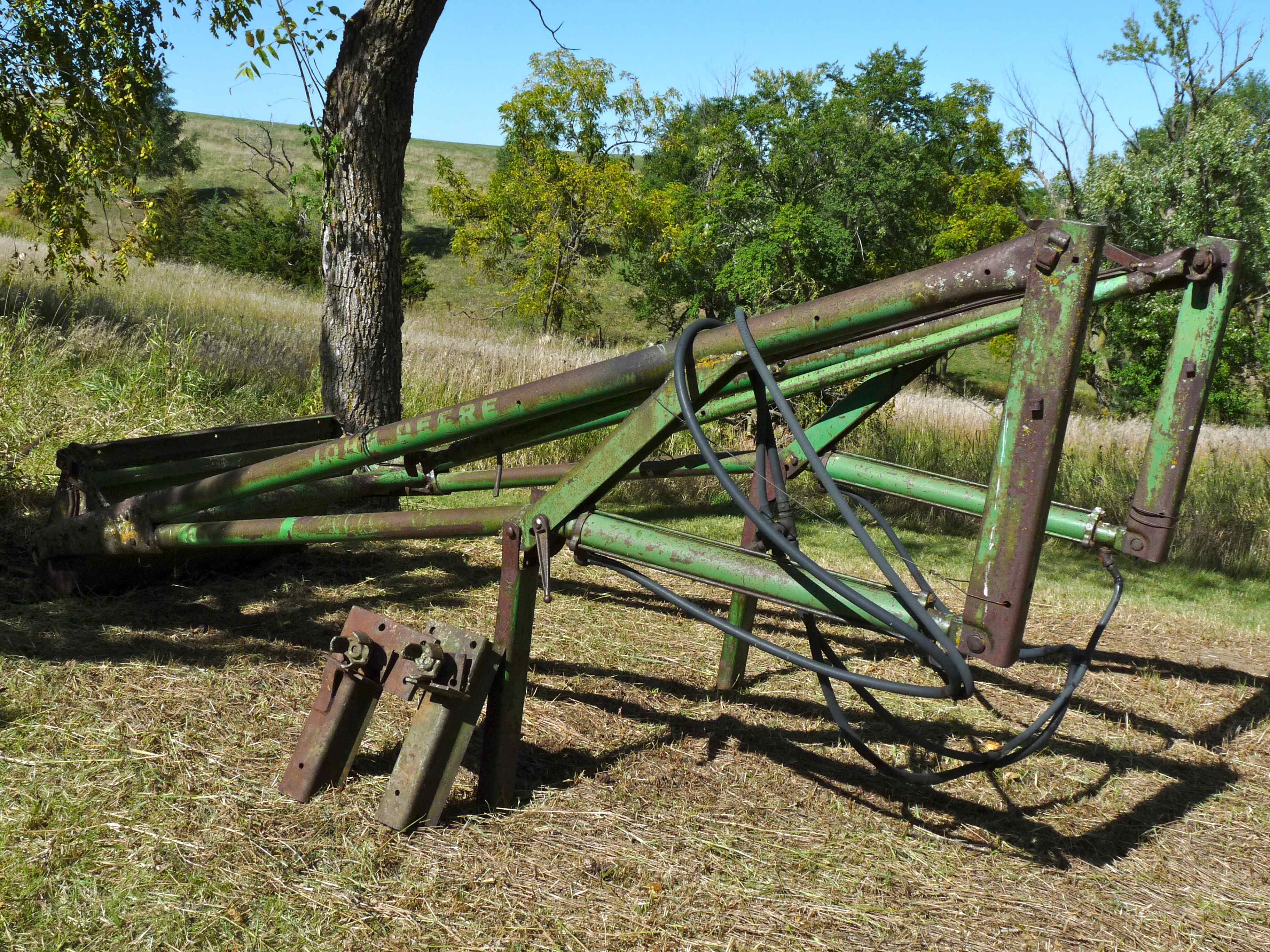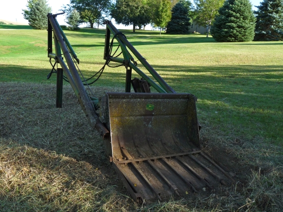 FOR SALE: John Deere Front End Loader, Model 45. Fits many vintage John Deere tractors up to and including 30 series. Good original condition. Located near Exira. $375.00. Call: Home: 712-268-2184 or Cell: 712-304-4445.