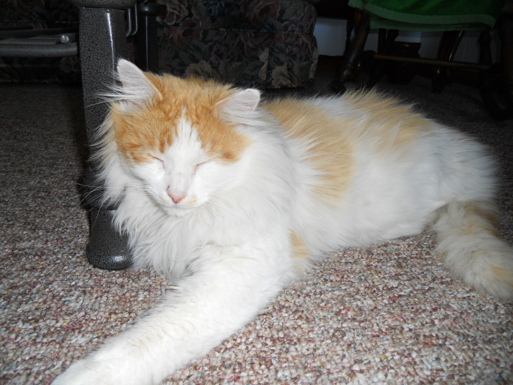 FREE TO A GOOD HOME:  a 2 and a half year old orange and white long hair cat. Been neutered and has had all shots but not declawed because he likes to go out. He is orange and white. Call 712-762-3142 in Anita.