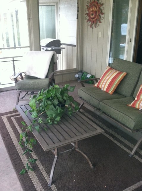 FOR SALE: Patio furniture used in an enclosed patio. Comes with love seat, 2 rockers, coffee tables, rug, and decorative pillow. Asking $200 or best offer. Please call or text 249-9329. SOLD!!