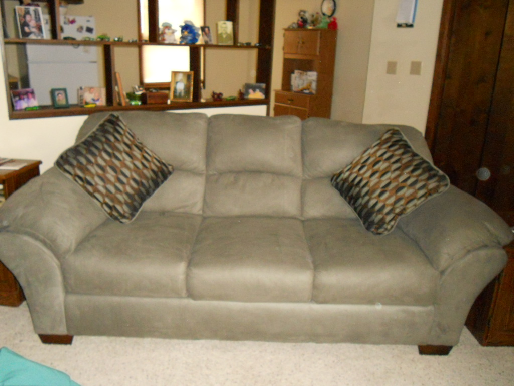 FOR SALE: Ashley Sofa $300…..always had a cover on….non smoking environment. 8″ Memory Foam Queen Mattress with platform frame …no headboard, also always kept a protection cover on it so like new. $200. Atlantic. My cell number 402-516-2973. Local number 243-2890. (Click pictures for larger images)