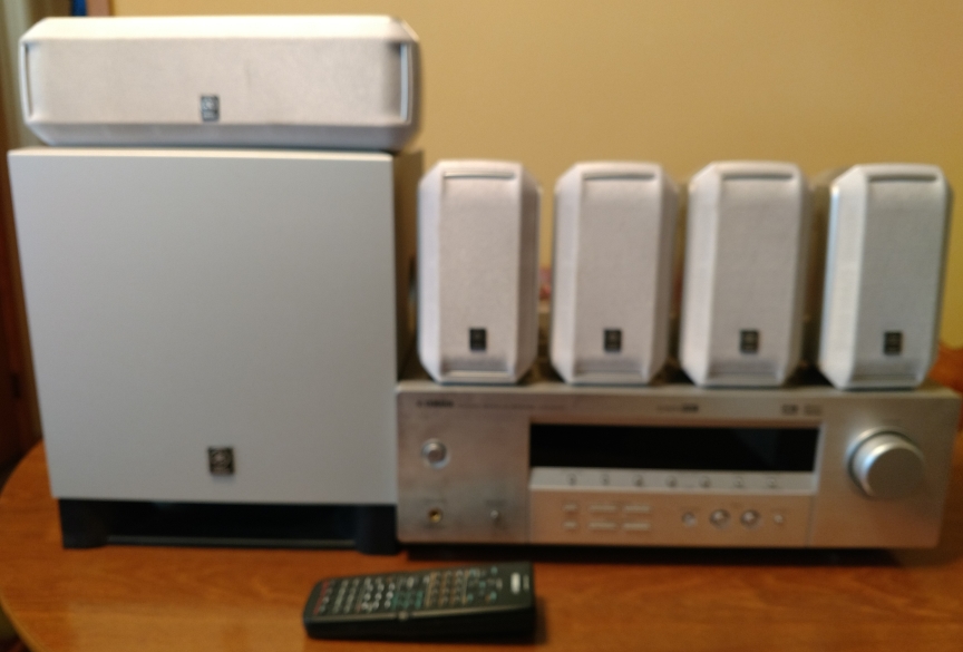 FOR SALE: Yamaha Surround Sound system (HTR-5730) AV Receiver…Complete with 5 speakers, great sounding with big bass sound. Real good shape. Call: 712-249-0077 Make an offer.