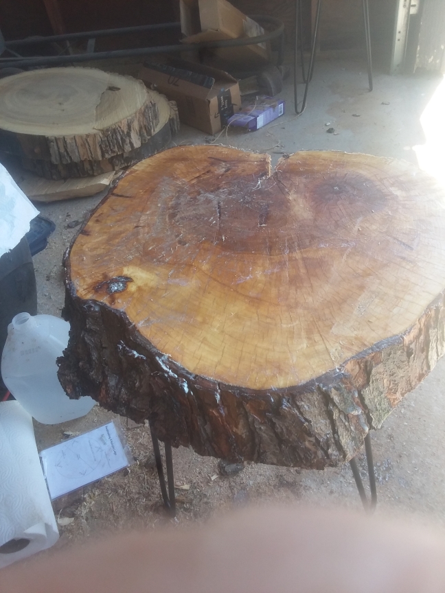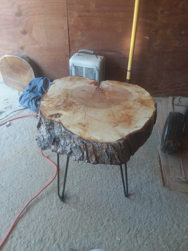 FOR SALE: This is a maple tree slice end table with hairpin legs. I’m asking $100 for it. Call 712-249-9242.