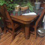 FOR SALE:  Solid Oak 45” x 45” square table with (2) 1’ leaves for sale, this table is very heavy and sturdy. $200 OBO, call 712-249-3274.