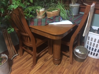 FOR SALE:  Solid Oak 45” x 45” square table with (2) 1’ leaves for sale, this table is very heavy and sturdy. $200 OBO, call 712-249-3274.