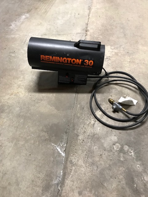 FOR SALE: Remington portable, forced air propane heater with hose and regulator (30,000 BTU). $40, call 712-249-9207.  SOLD!