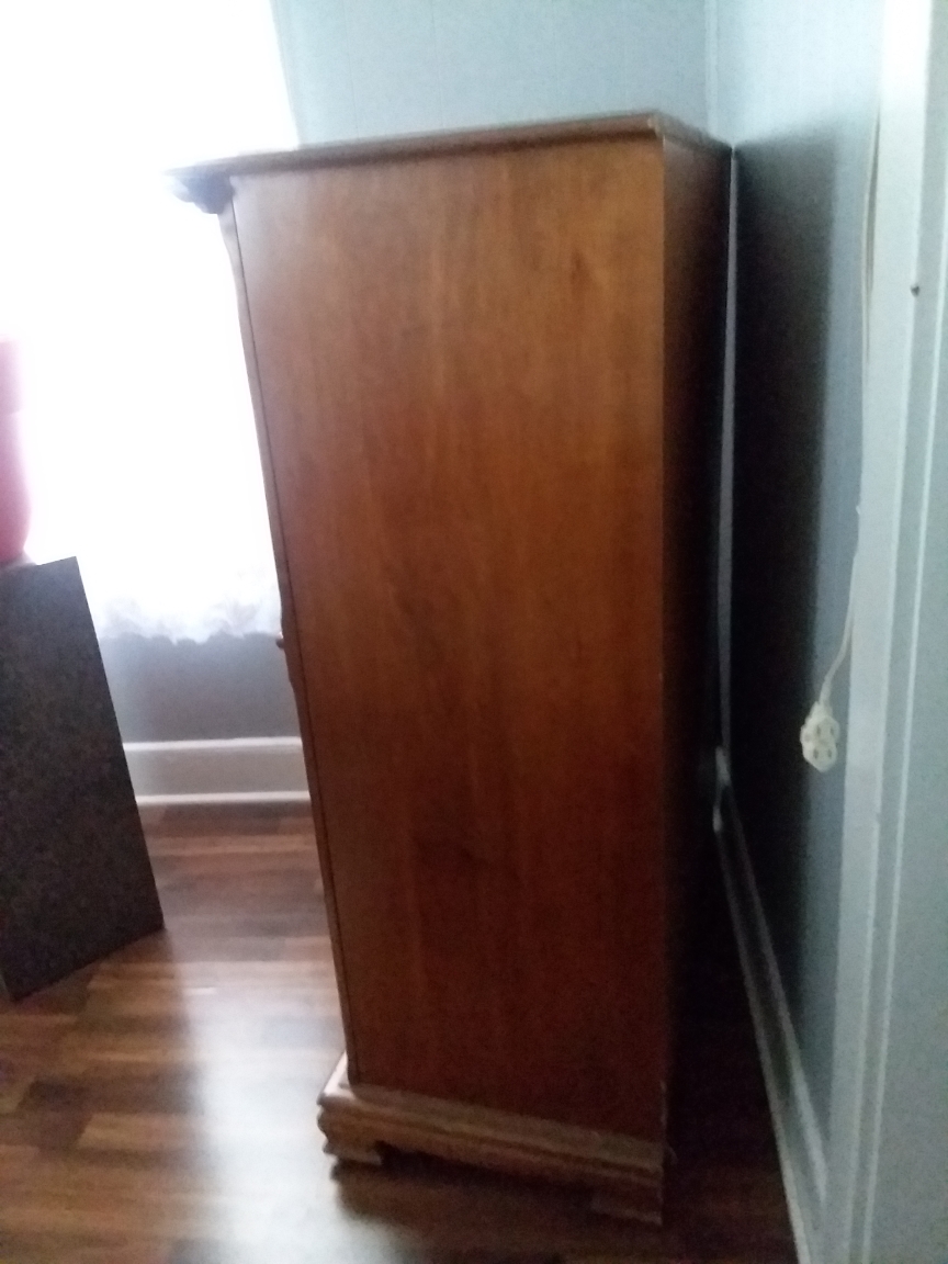 FOR SALE: Living room set: table 42″x60″ with 2 – 18″ leaves; China hutch 64″ wide, lighted, mirror glass in back and glass shelves on top. 773-5071 or 249-4065 (cell)