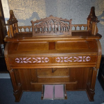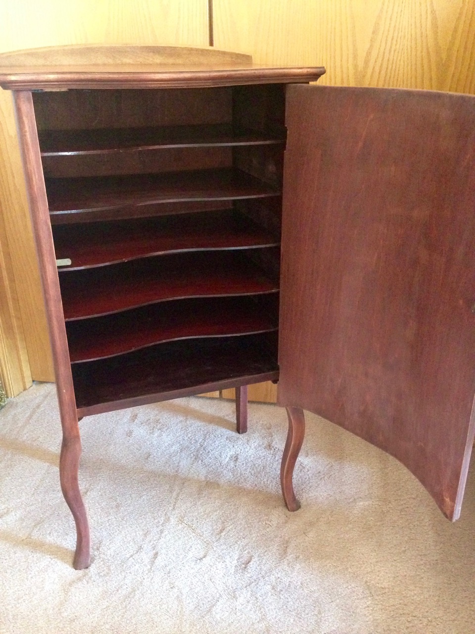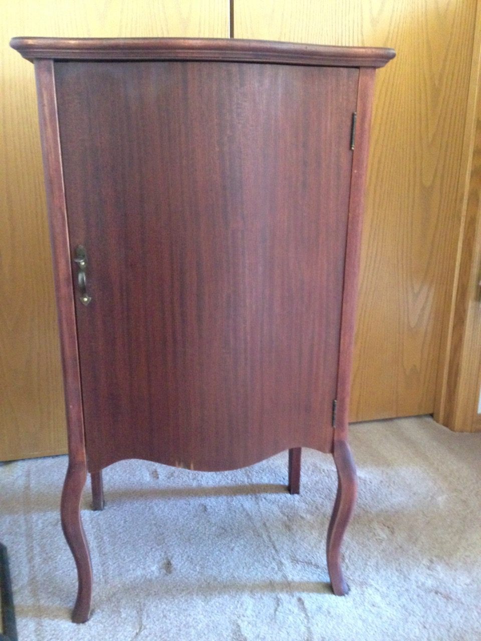 FOR SALE: Antique music cabinet. Gorgeous curved front on this wood music cabinet. Original hardware on the door. In excellent condition and from a smoke free home. Can be used to store sheet music, blueprints, art, etc. Asking $100. Call 805-490-7096 with questions.