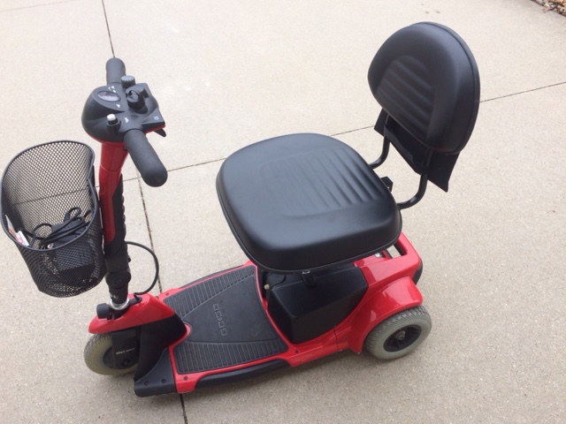 FOR SALE:  Pride go-go ultra scooter, new batteries, will fold for trunk of car, weighs 72lbs, 10 mile range, bought new, selling for estate $600 Call 712-243-4261.