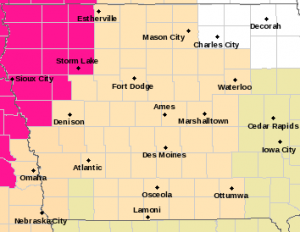 (Des Moines, Iowa) – The latest U-S Drought Monitor report shows conditions worsening across Iowa. The report, issued Thursday, said 100% of Iowa is experiencing abnormally dry conditions, marking the first time since August 2013 that all of the state has had some sort of drought designation. 57% of Iowa is experiencing moderate drought, an increase from 52% just a week ago, while 27% of Iowa is dealing with severe drought. 7% of Iowa has extreme drought. Plymouth, Cherokee, Buena Vista and Pocahontas Counties, along with parts of seven other counties in northwest Iowa, are included in the Extreme Drought conditions.